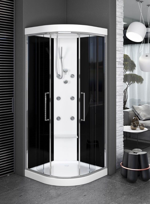 BOX KAMET 90X90SEMICIRCOLARE MULTIFUNZCRISTALLI A MURO BIANCHI COLONNA DOCCIA BIANCA