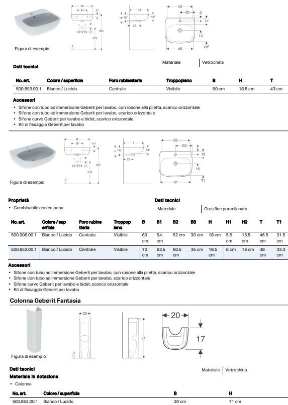 LAVABO FANTASIA CM.60 BIANCO POZZI GEBERIT