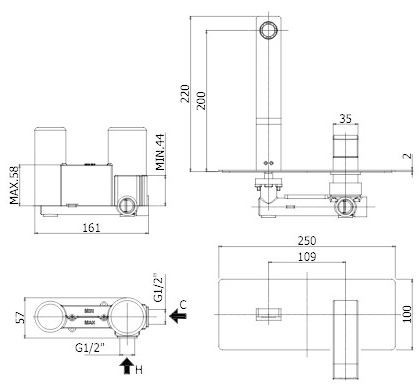 MISCELATORE INCASSO LAVABO CON PIASTRA IN ACCIAIO INOX 250X100 LEVE PAFFONI CON BOCCA 240 MM CROMO LES106CR