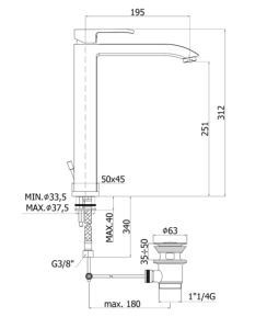 MISCELATORE LAVABO SC.AUT.11/4 LEVEL ALTO PAFFONI CROMO LES085CR