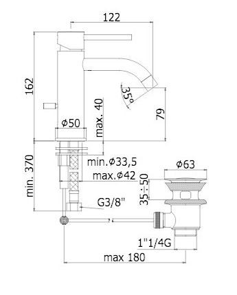 MISCELATORE LAVABO S.A.1 1/4 LIGHT PAFFONI NERO OPACO LIG075NO
