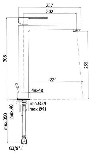 MISCELATORE LAVABO PROLUNGATO H.308 EFFE LEVA APERTA CON SCARICO AUTOMATICO DA 11/4 PAFFONI CROMO EF085CR