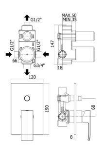 MISCELATORE INCASSO DOCCIA CON DEVIATORE ELIS 015CR PAFFONI CROMO