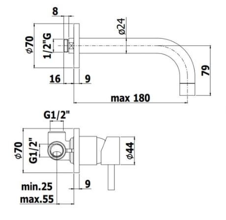 MISCELATORE LAVABO INCASSO BOCCA A MURO MM 245 STICK PAFFONI CROMO