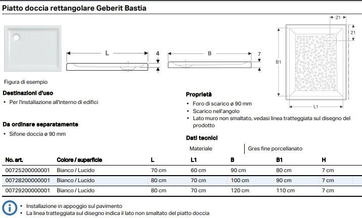 PIATTO DOCCIA 70X90 H 7 BASTIA BIANCO GEBERIT