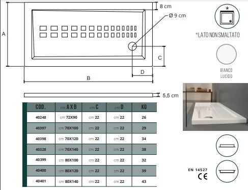 PIATTO DOCCIA 70X100 ALTHEA ITO H.5,5