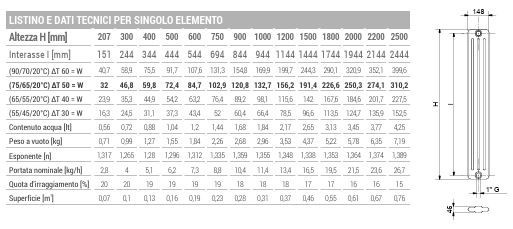 RADIATORE ARDESIA DA 5 EL. COLONNE 4 H.2056 int 2000 prof.148 ALL.2 LAT.1/2 BIA.