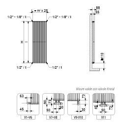 RADIATORE CORDIVARI ALICE 18 TANDEM VERTICALE H 1800 X 336 ATTACCO INFERIORE V9 DA 1/2 INTERASSE 276 BIANCO