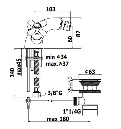 MONOFORO BIDET' IRIS PAFFONI CERAMICA CANNA FUSA CROMO IRV135CR