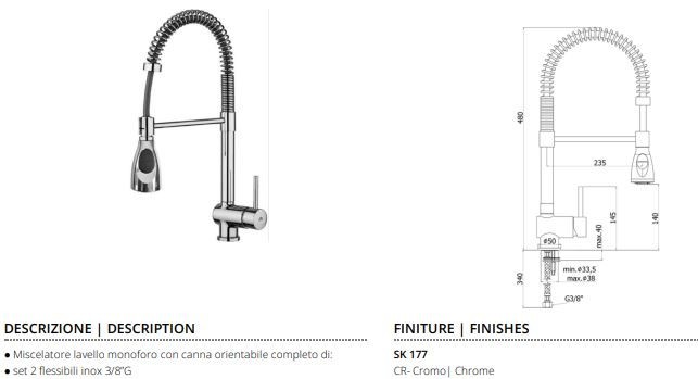 MISCELATORE LAVELLO STICK PROFESSIONAL A MOLLA PAFFONI CROMO SK177