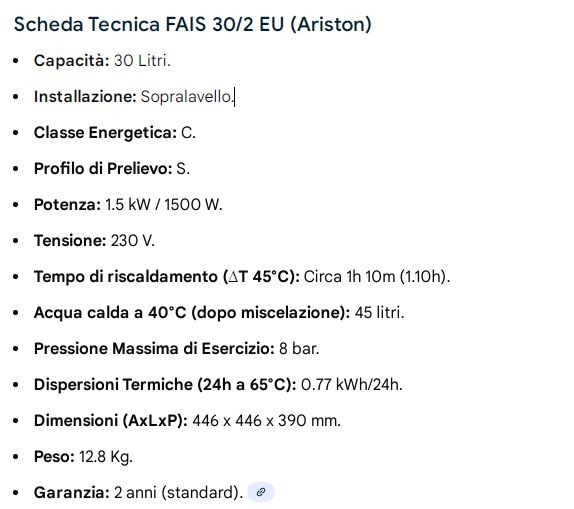 SCALDABAGNO 30 LT FAIS GARANZIA 2 ANNI