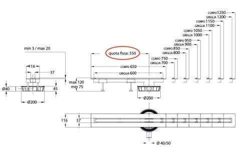 Canalina doccia CANALISSIMA cm90 griglia ALLUMINIO