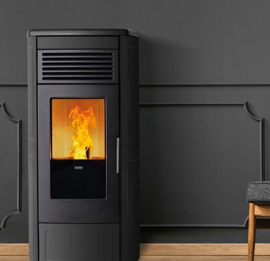STUFA A PELLET KLOVER 34.5 KW RISCALDAMENTO E PRODUZIONE L.660X P.820 X H.1380