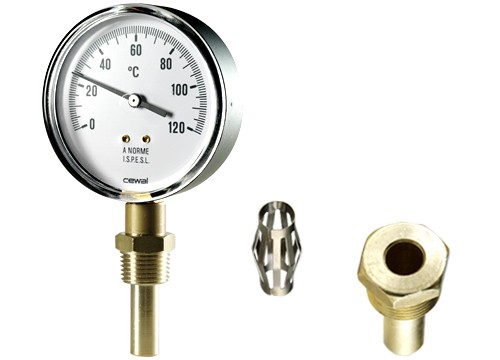 TERMOMETRO BIMETALLICO RADIALE DN 80. GAMBO IN OTTONE CM.5 -30+50°